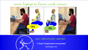 By raising the screen to eye height, the loads on the neck muscles can be reduced by over two-thirds!